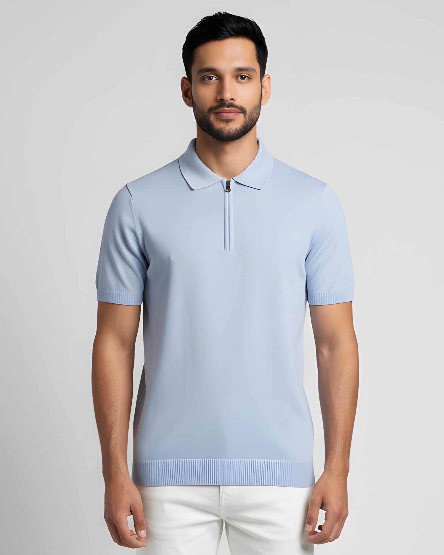 2H #2001-40 Blue Knitted Cotton Polo T-Shirt