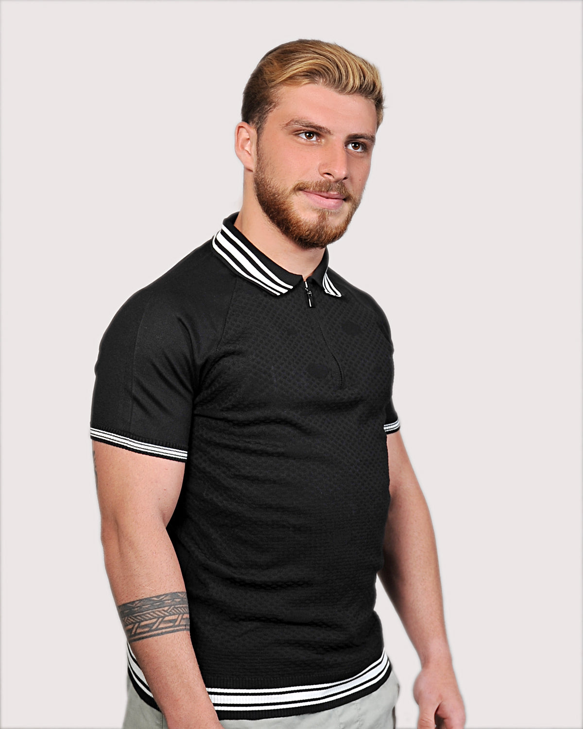 SALE! 2H #39749-40 Black Knitted Polo T-Shirt