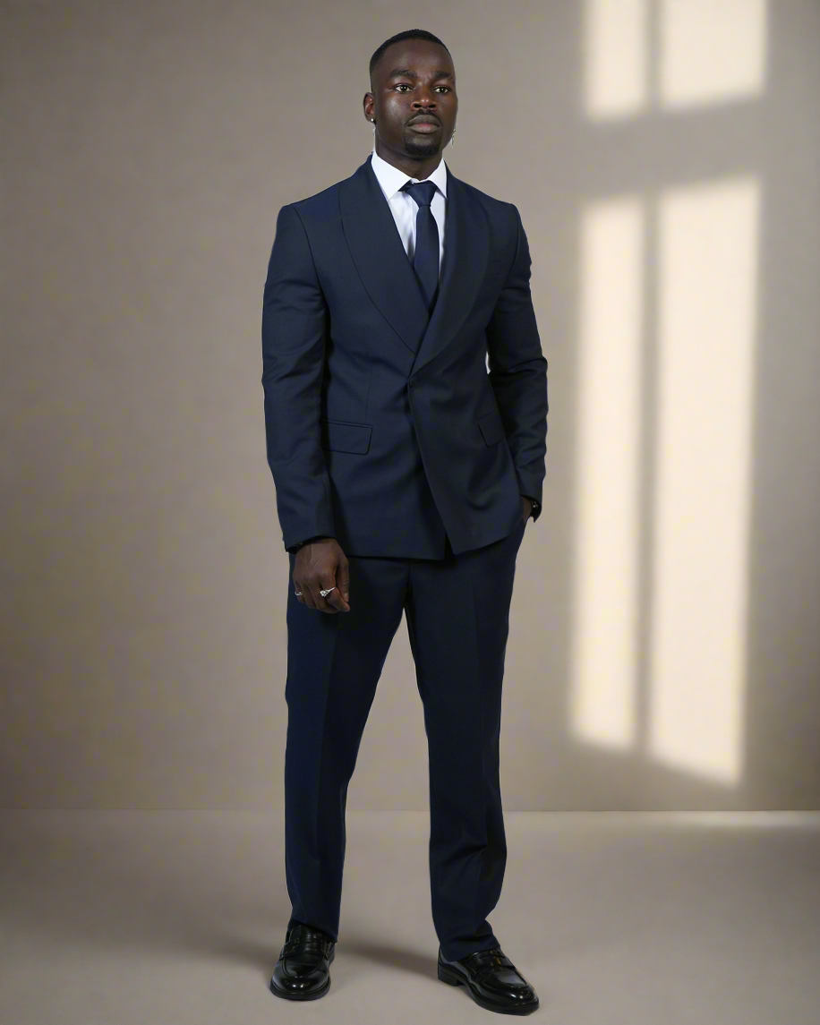 2H Navy One Button Collar Shawl Suit